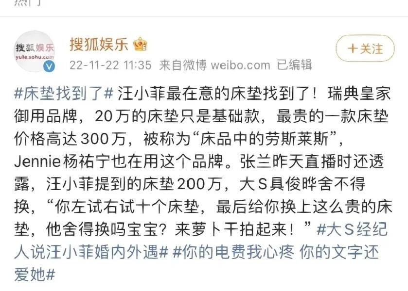 那段时期,两人从互相指责升级到“床垫事件”,在网络上掀起轩然大波。无数网友站队批判大S,称她“冷漠”“斤斤计较”“不顾大局”,舆论几乎一边倒地对她进行声讨。