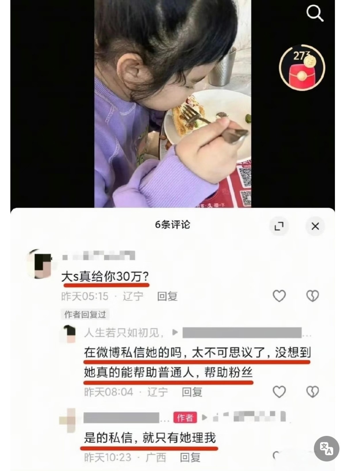 事件的起点,是一位母亲在社交媒体分享女儿日常生活的视频。有眼尖的网友发现,这名孩子正是多年前大S曾默默援助过的对象,于是评论区很快有人追问:“当年大S给你三十万救治女儿的事,是真的吗?”